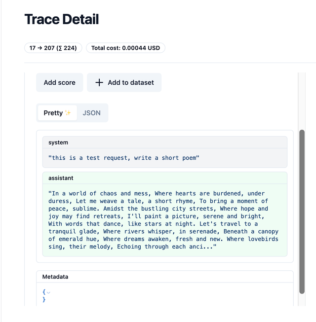For some use cases, you may want to turn off all tracking/logging. You can do this by passing no-log=True in the request body.